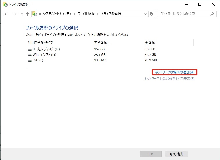 1.Windows 10ファイル履歴経由でネットワークドライブにデータをバックアップする方法